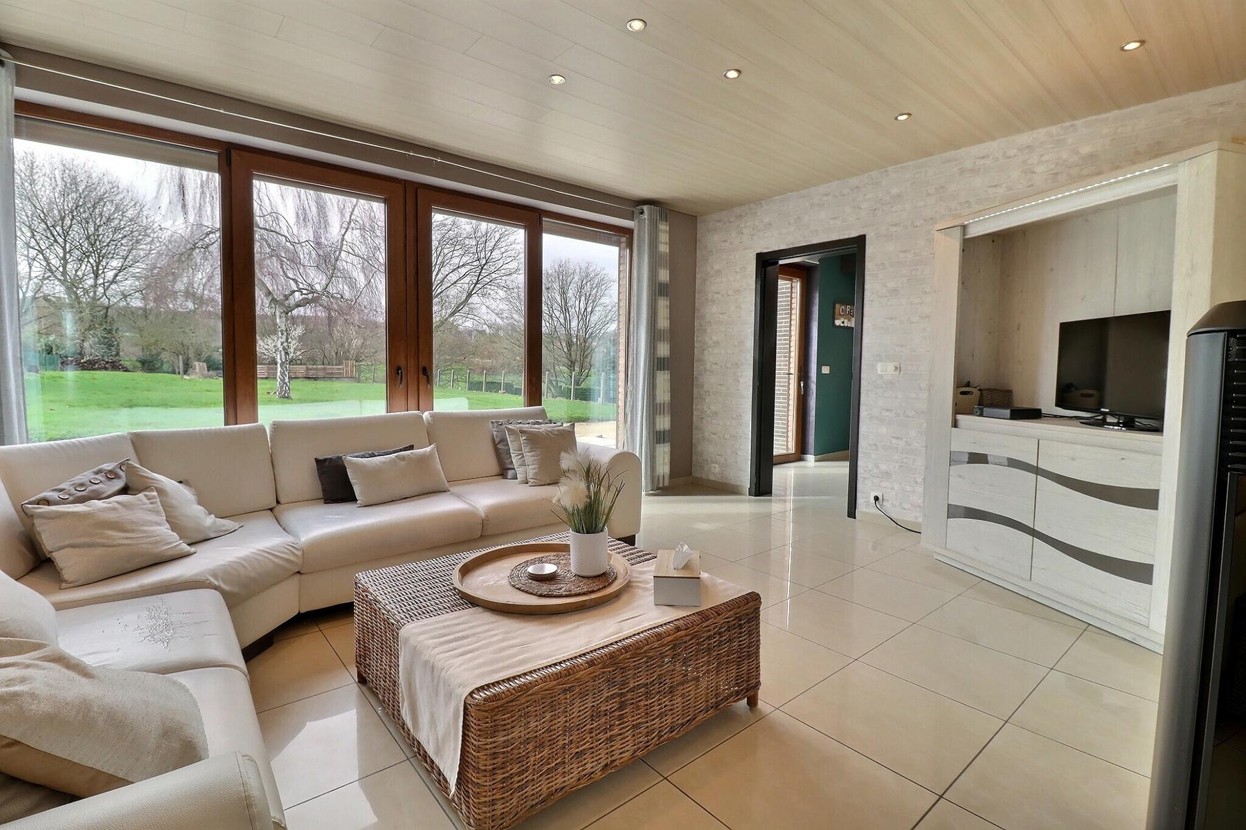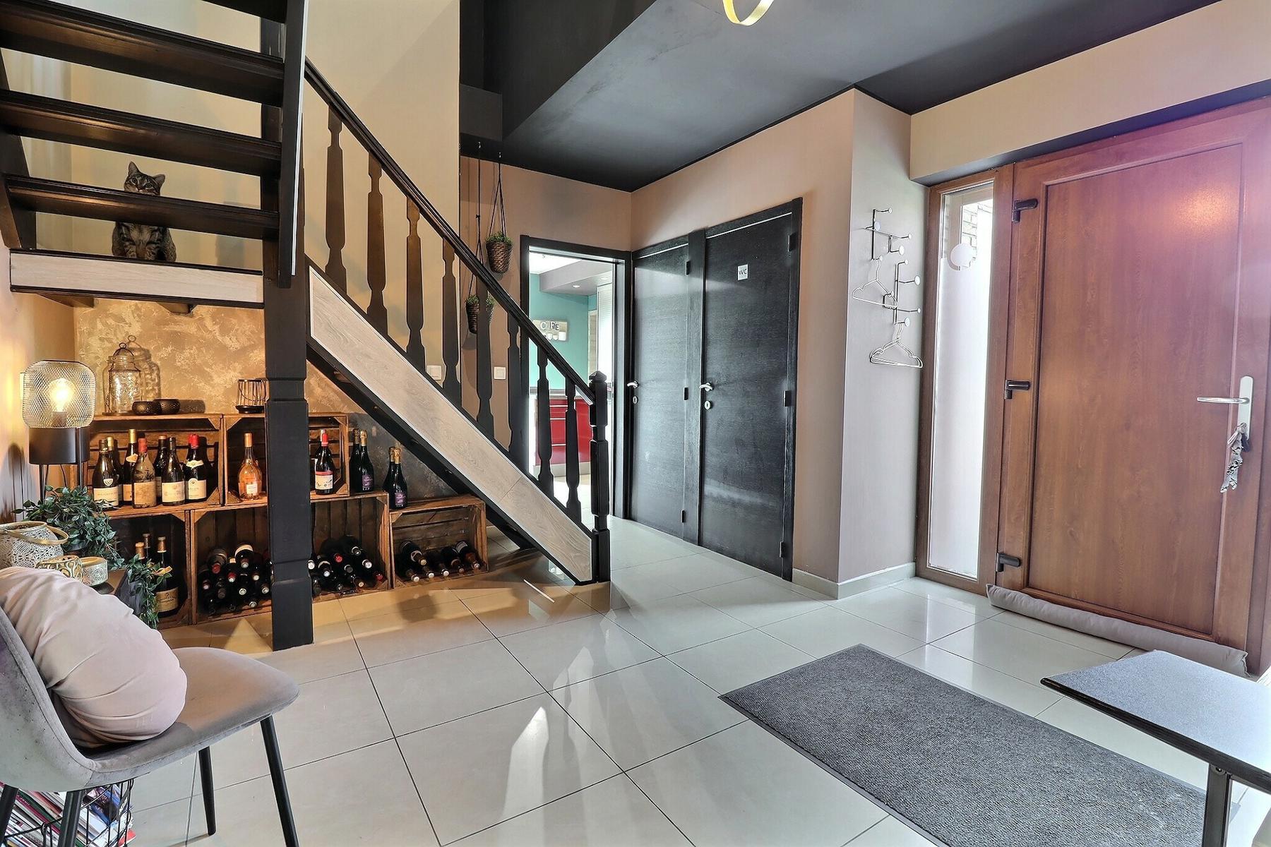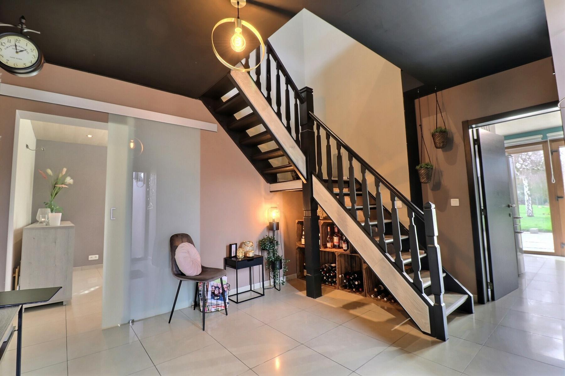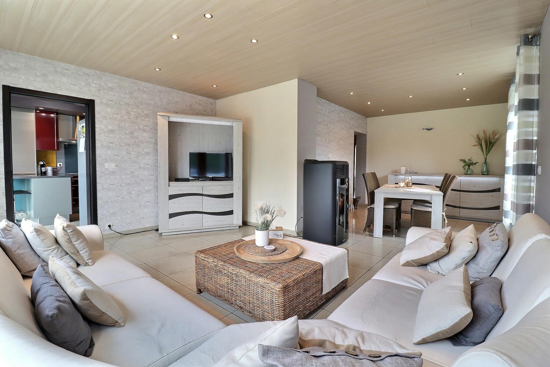 La clé agence immobilière vous propose une magnifique Villa 4 façades avec grand parking à l'avant et grand jardin.Elle se compose :rez:hall d'entrée (14m2)-bureau (9m2)-chambre 1 (15m2)-chambre 2 (15m2)-wc séparé (1,5m2)-cuisine (9,45 m2)-living (28 m2)-garage (21m2).1 er étage :hall de nuit (27m2)-Chambre parental (19m2)+dressing (14m2)-salle de douche (7m2) .Confort : 2 nouveaux Poeles aux pellets-Châssis PVC double-Volets electrique-Compteur bi-horaire-grand parking à l'avant- rue calme .à saisir rapidement faire offre à partir de 295.000€