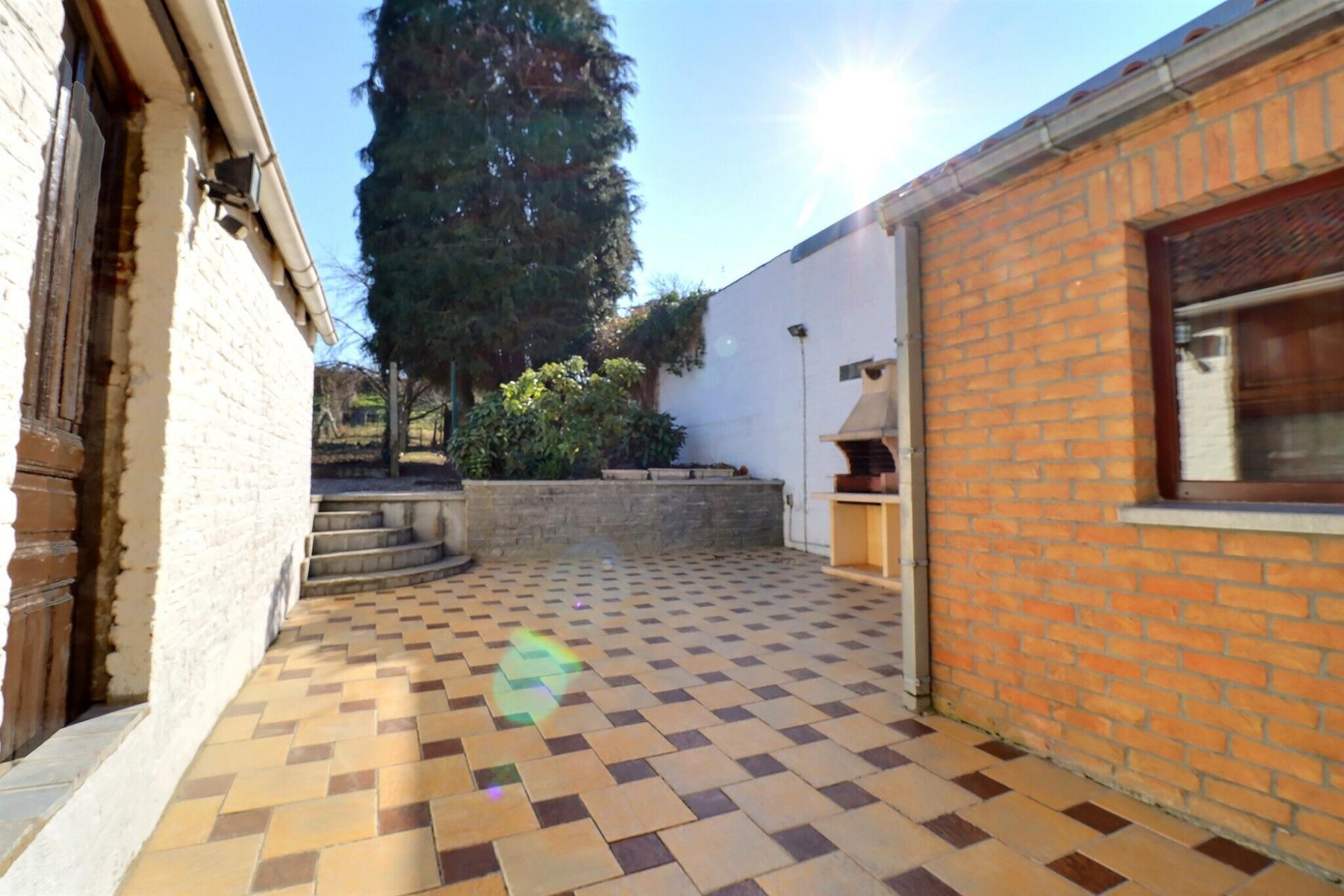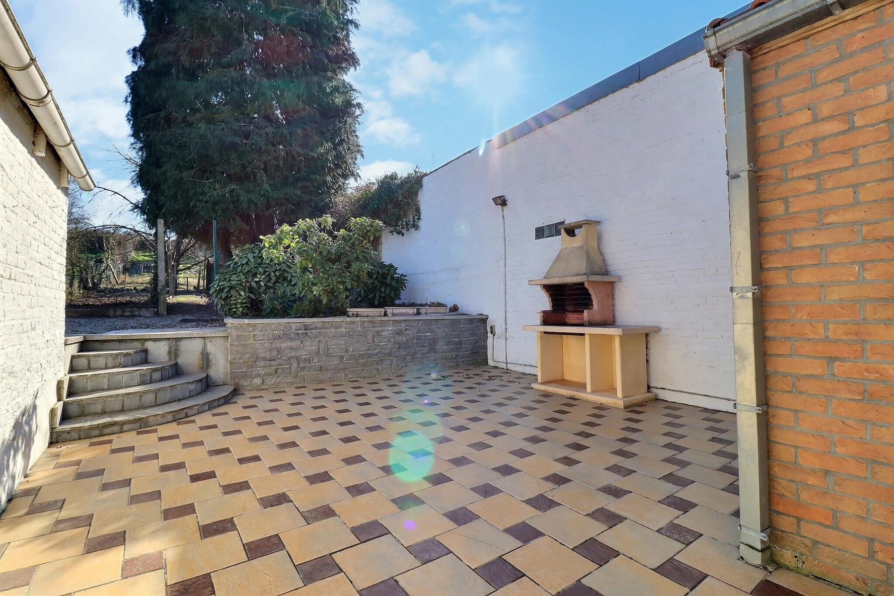 L'agence la clé vous propose une jolie maison 3 façades habitable de suite, avec un jardin et terrasse .Elle se compose au Rez : hall d'entrée-salon -salle à manger - living - cuisine équipée -salle de bain avec WC - Terrasse - Remise - jardin - Sous-sol : cave .1 er étage : 1 er chambre ( 14 m2)- 2 eme chambre (13 m2). Grenier : aménageable (25m2) .