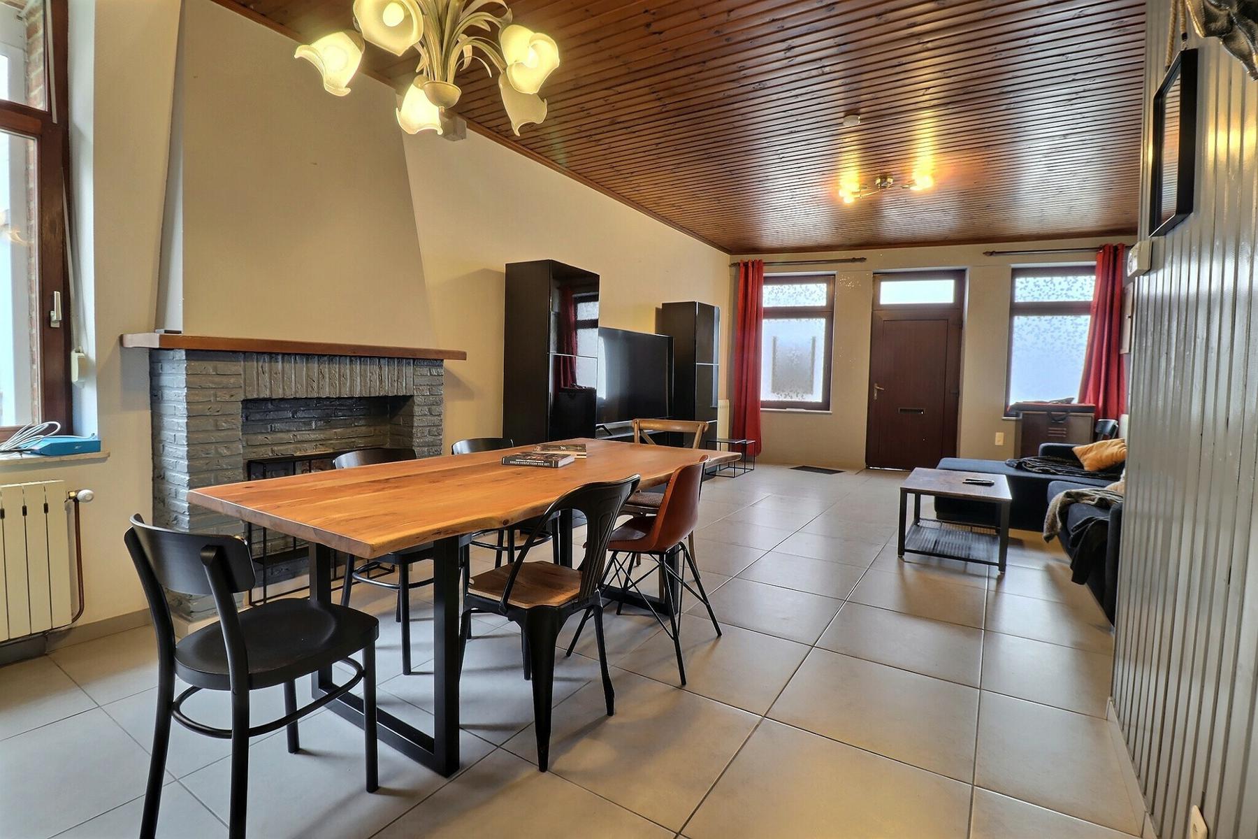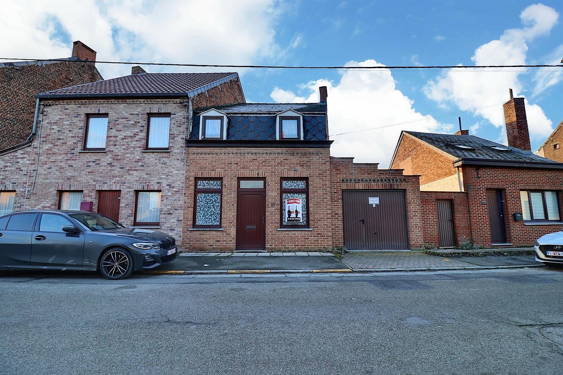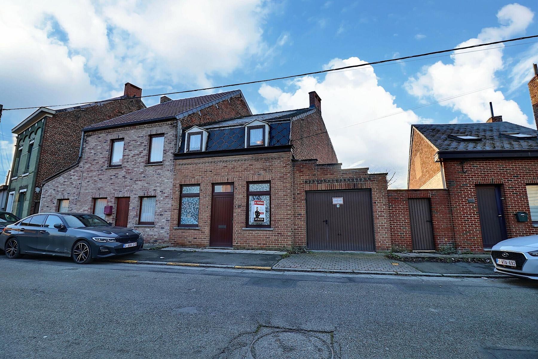 Jolie maison 3 façades avec cour et garage .Habitable de suite et convient parfaitement à un jeune couple . Elle se compose : Rez : living (40 m2)-Cuisine (14 m2)-Buanderie (4 m2)-Sdb (7 m2) -petit cour-garage (20M2)-1 er étage : Chambre 1 (19m2)-Chambre 2 (20m2).Confort : Châssis DV pvc et bois -Electricité conforme-rue trés calme .Faire offre à partir de 149.000€