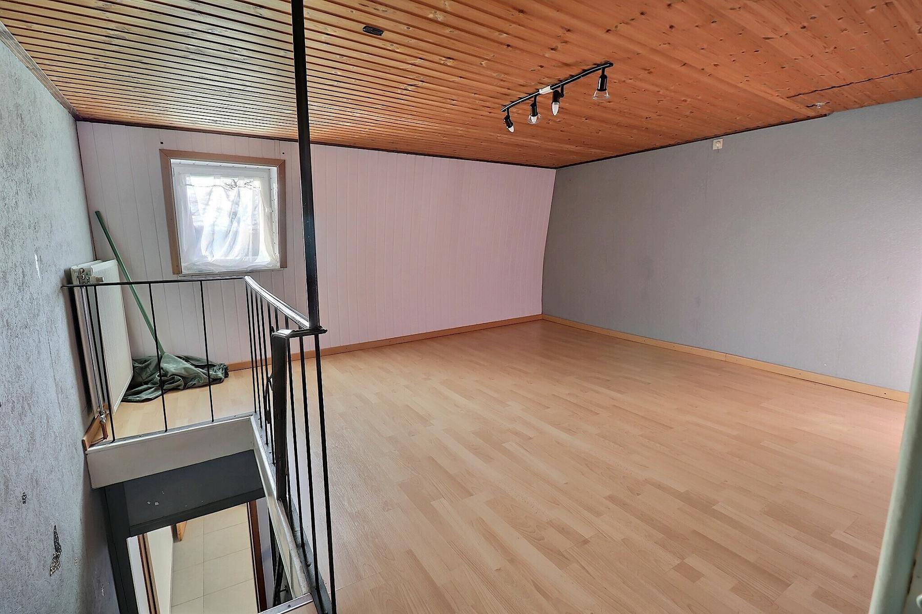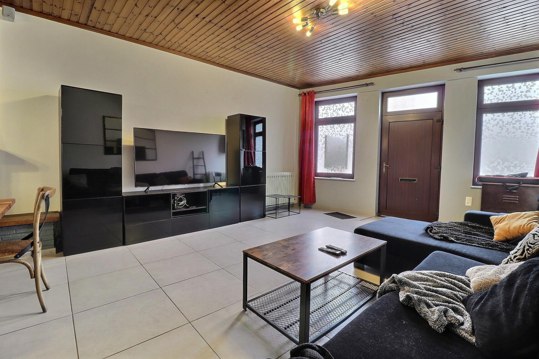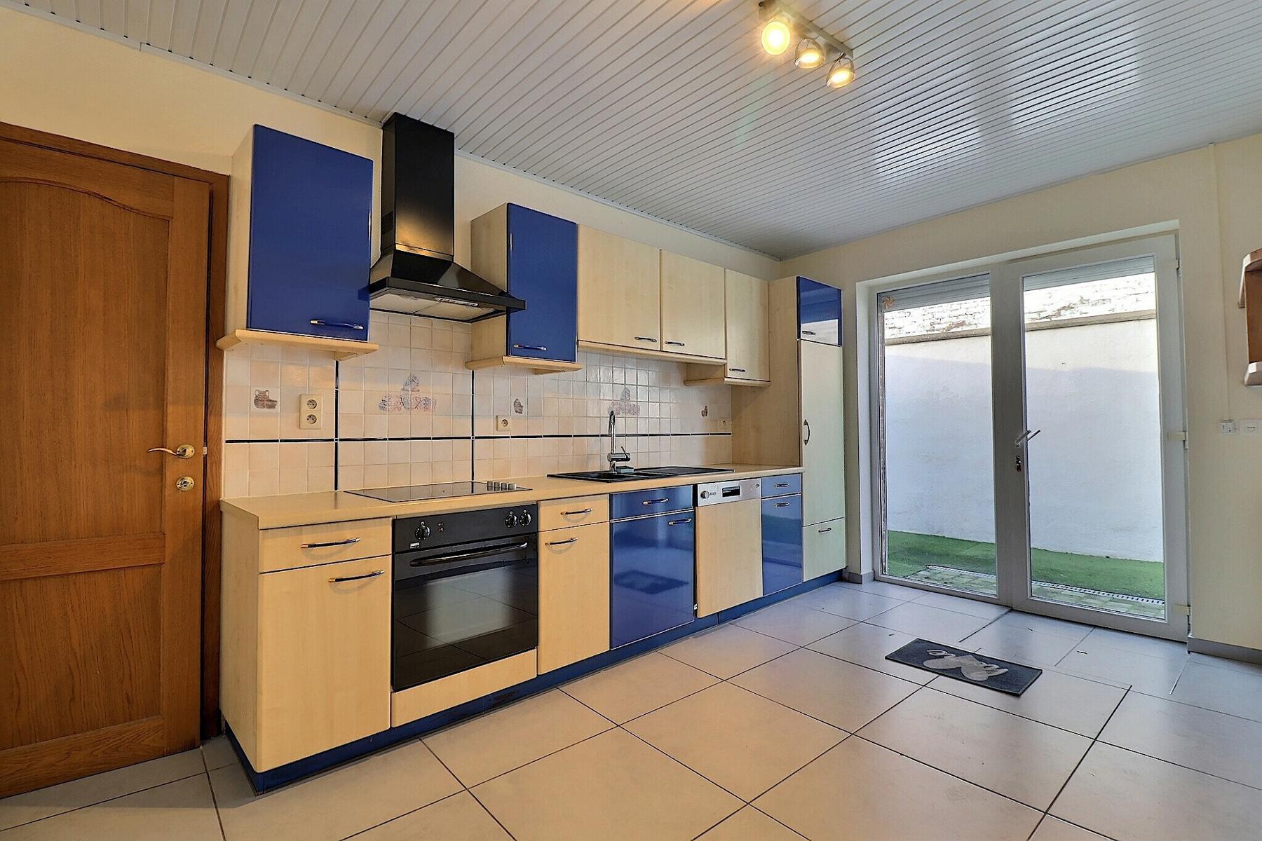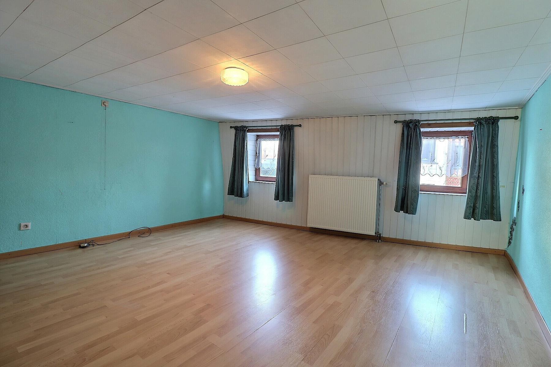 Jolie maison 3 façades avec cour et garage .Habitable de suite et convient parfaitement à un jeune couple . Elle se compose : Rez : living (40 m2)-Cuisine (14 m2)-Buanderie (4 m2)-Sdb (7 m2) -petit cour-garage (20M2)-1 er étage : Chambre 1 (19m2)-Chambre 2 (20m2).Confort : Châssis DV pvc et bois -Electricité conforme-rue trés calme .Faire offre à partir de 149.000€