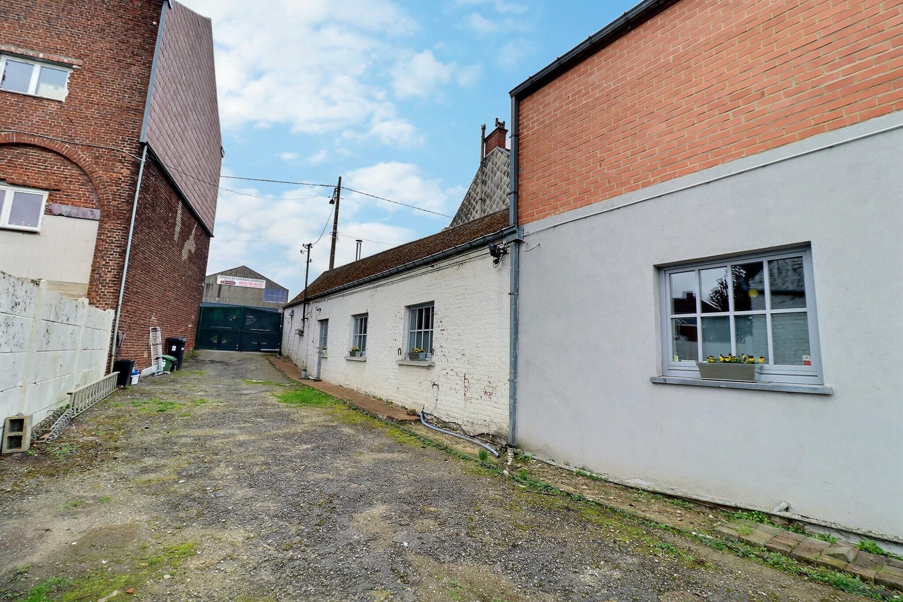 L'agence la clé vous propose une jolie maison 3 façades avec passage carossable + grand jardin +atelier. Convient parfaitement à un jeune couple et possible droit d'enregistement réduit. Elle se compose: hall d'entrée (10 m2)+bureau-salle de douche (8m2)+ wc -Cuisine équipée-salon (32 m2)-jardin-atelier (40 m2)-1 er étage : chambre (24 m2).Confort : Dv Pvc et bois -Cc gaz-Poele au pellet-passage carossable-grand jardin. A saisir rapidement faire offre à partie de 165.000€